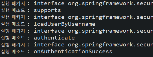스프링에서는 두 라이브러리를 동시에 사용할 수 있도록 설계되어 있습니다. 즉 위에서 두 라이브러리를 모두 의존 설으로 등록해두었으므로 스프링에서 자동으로 가져다가 사용합니다. 인터페이스를 구현한 클래스는 AspectJ로, 인터페이스를 구현하지 않은 클래스는 Cglib을 사용하여 AOP를 구현해줍니다.
